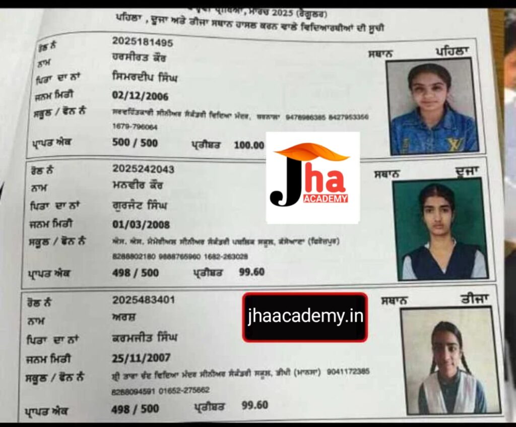 इस वर्ष भी पंजाब बोर्ड की 12वीं कक्षा की परीक्षा में विद्यार्थियों ने उत्कृष्ट प्रदर्शन किया है। आइए जानते हैं इस साल के टॉपर्स के बारे में जिन्होंने अपनी मेहनत से यह मुकाम हासिल किया है और पूरे राज्य में नाम रोशन किया है: