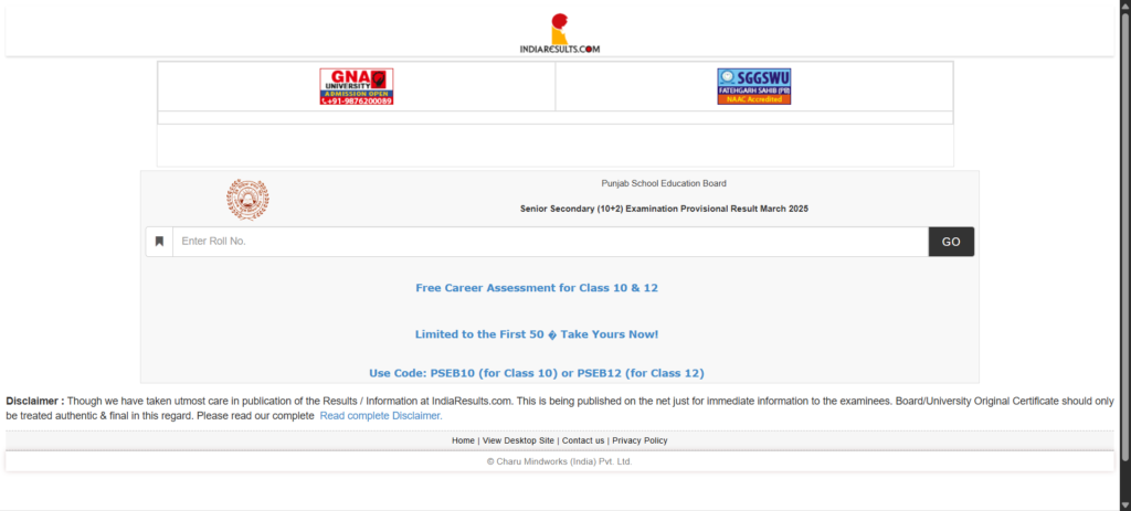 - होमपेज पर, आपको “PSEB Class 12th Result 2025” या “परिणाम” से संबंधित एक लिंक दिखाई देगा। इस लिंक पर क्लिक करें।