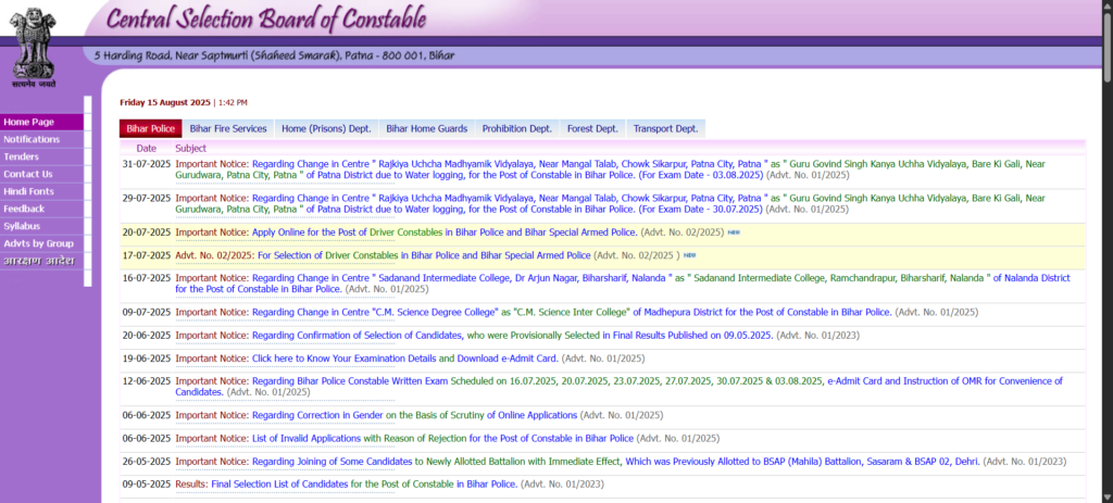 आवेदन प्रक्रिया शुरू करने से पहले, उम्मीदवारों को CSBC बिहार पुलिस की आधिकारिक वेबसाइट पर जाना चाहिए। यहां आपको सभी नवीनतम अधिसूचनाएं, पात्रता विवरण, परीक्षा पैटर्न एवं अन्य महत्वपूर्ण सूचनाएं उपलब्ध होंगी।