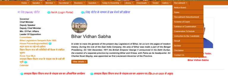 - आधिकारिक वेबसाइट पर जाएँ: सबसे पहले, बिहार विधान सभा की आधिकारिक वेबसाइट vidhansabha.bih.nic.in पर जाएँ।